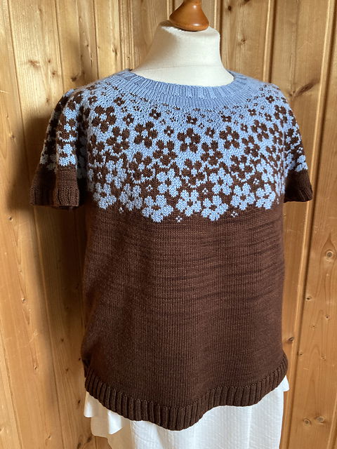 Gestrickt habe ich diesen Pullunder oder Kurzarmpulli aus Wollmeise Blend, ein leider aus dem Programm genommenes Garn mit Kaschmiranteil, weich und glatt zugleich, etwas sehr Feines. Mit NS 3 mm habe ich knapp 400 g verbraucht.